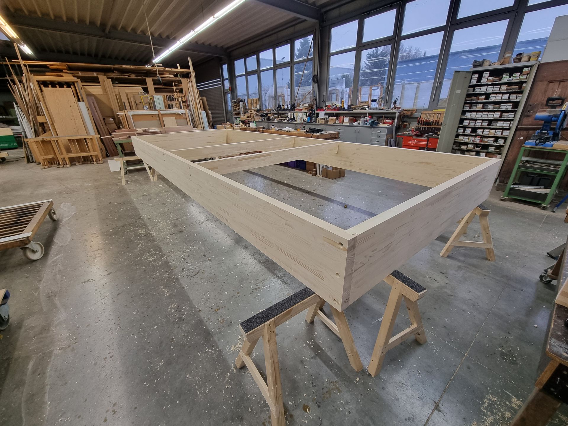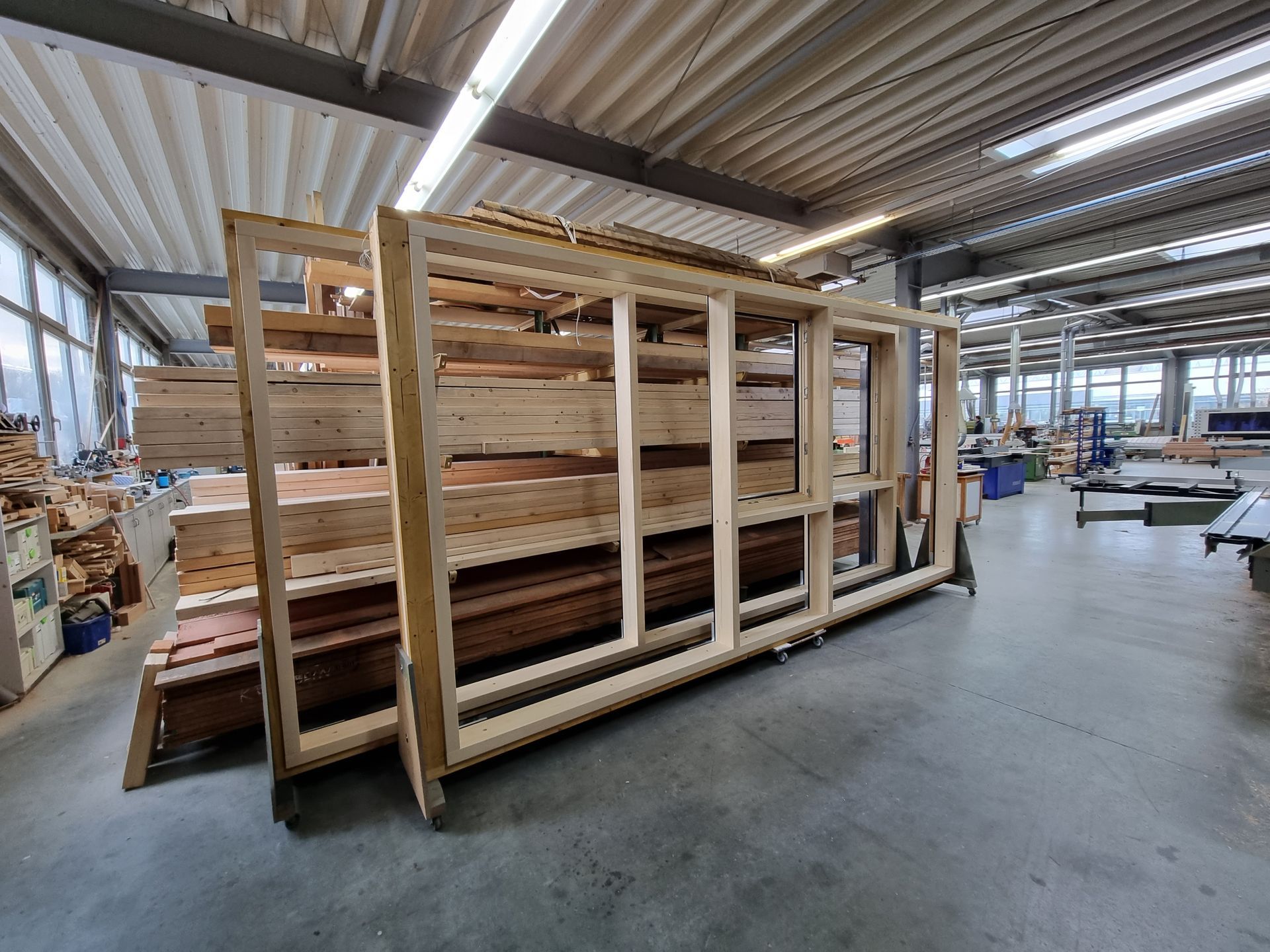 Besonders stolz sind wir auf die Produktion von Fenstern, Hautüren und Wintergärten in Holz und Holz/Aluminium Ausführung, welche wir in unserer ca. 1.800 m² großen Fertigungsstätte individuell für Sie anfertigen.